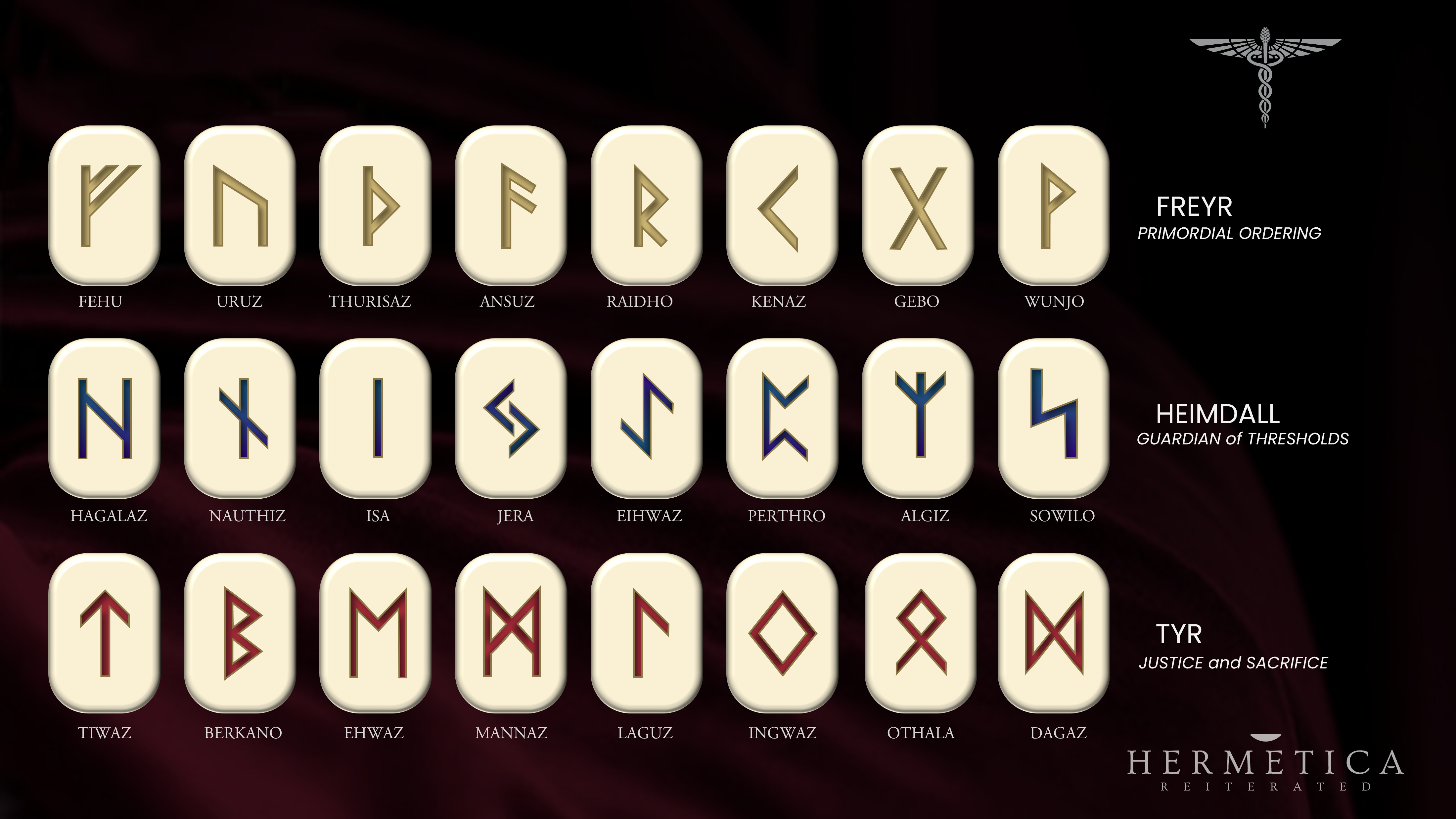 The intentionality driving this thread of the Hermetica Reiterated project, is to see what depth and insight can be brought to light by approaching the Runes through the most discerning synthesis of academic, linguistic, and esoteric understanding available. And then, as I did with the Tarot, to sit with each symbol in contemplation and let its archetype and etymology speak directly to Nous.